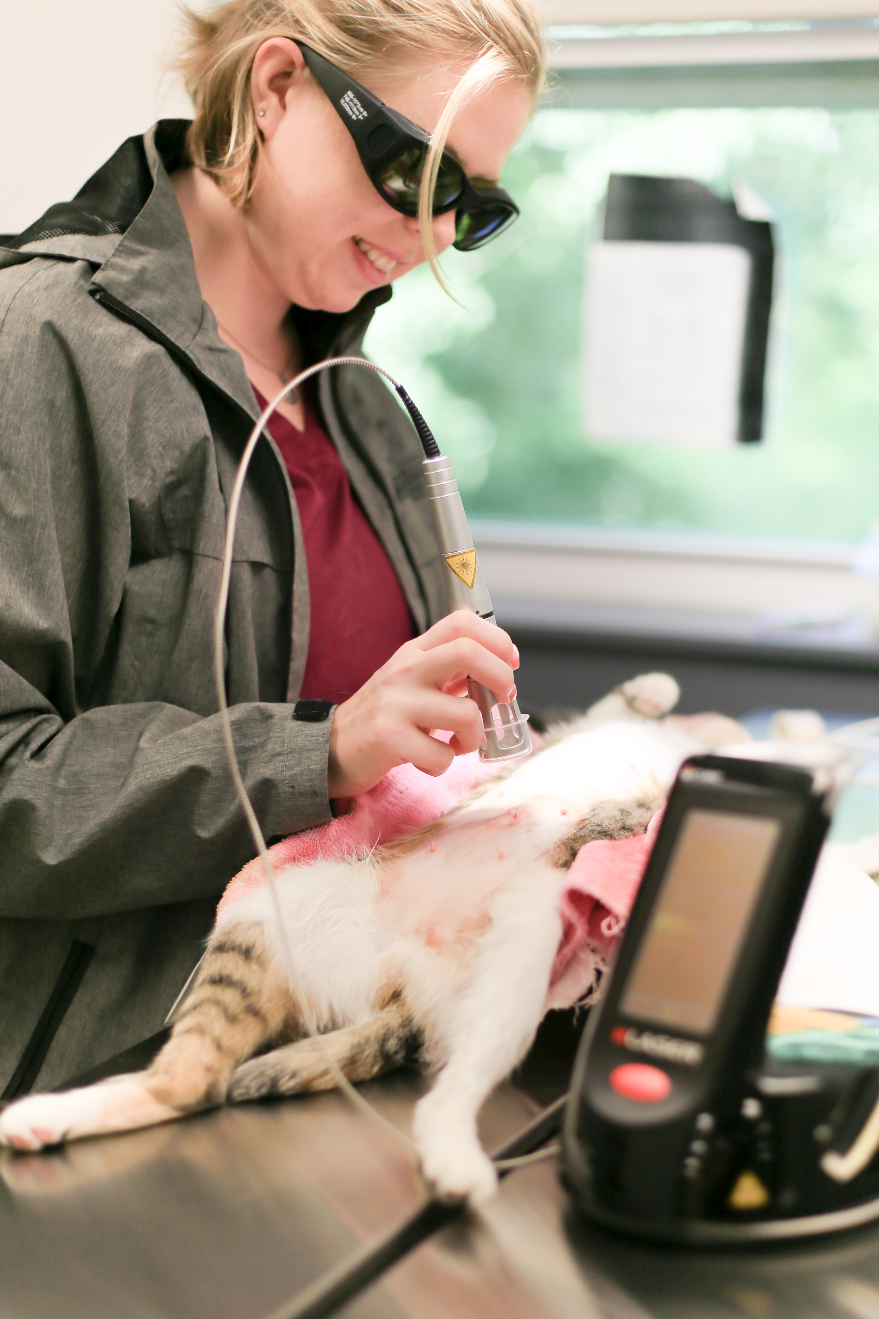 - Your pet relaxes comfortably while we gently apply the laser to targeted areas.